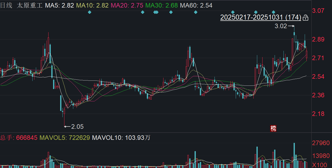 二级市场上,截至31日收盘,太原重工下跌1.07%报2.78元/股,总市值约93.05元,今年来公司股价累计上涨约11%。