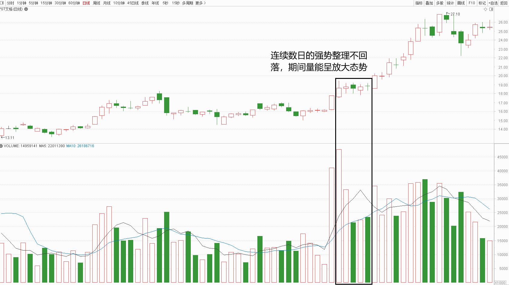 而且调整的时候,K线实体会明显变小,甚至收小阴星,成交量还会跟着缩,绝不会出现放量大阴线,这种调整才是强势整理,拿住了才能吃到后面的肉。